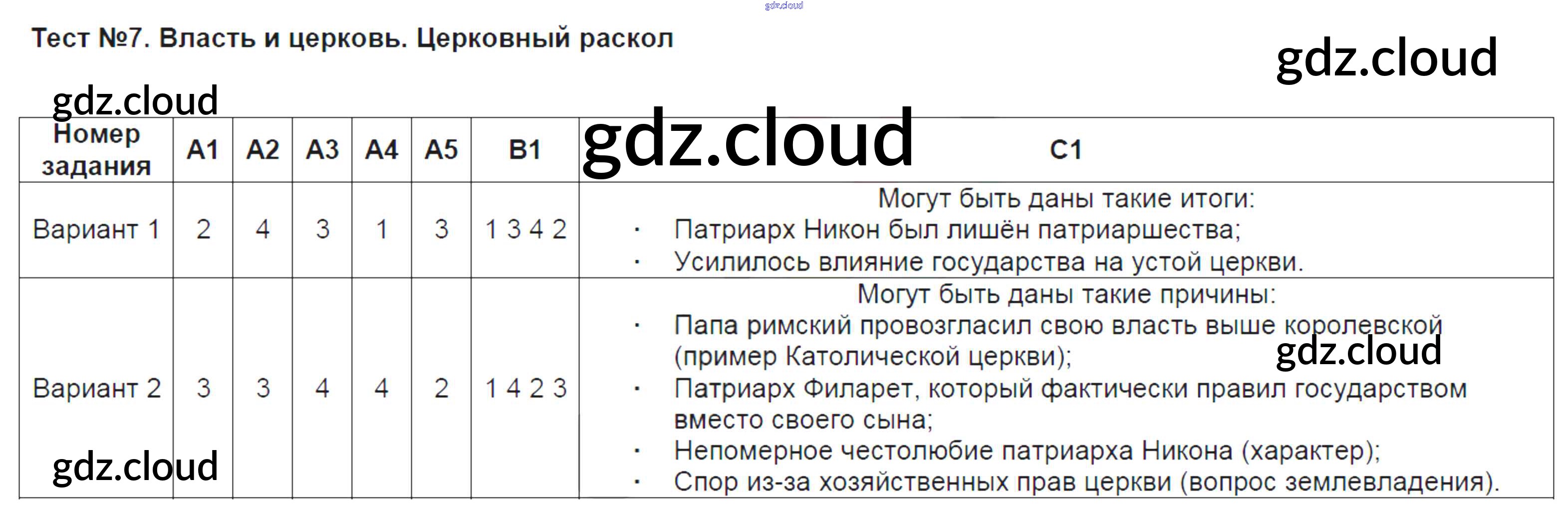Ответы к Тестам по Истории 7 класс Контрольные измерительные материалы Смирнов Экзамен