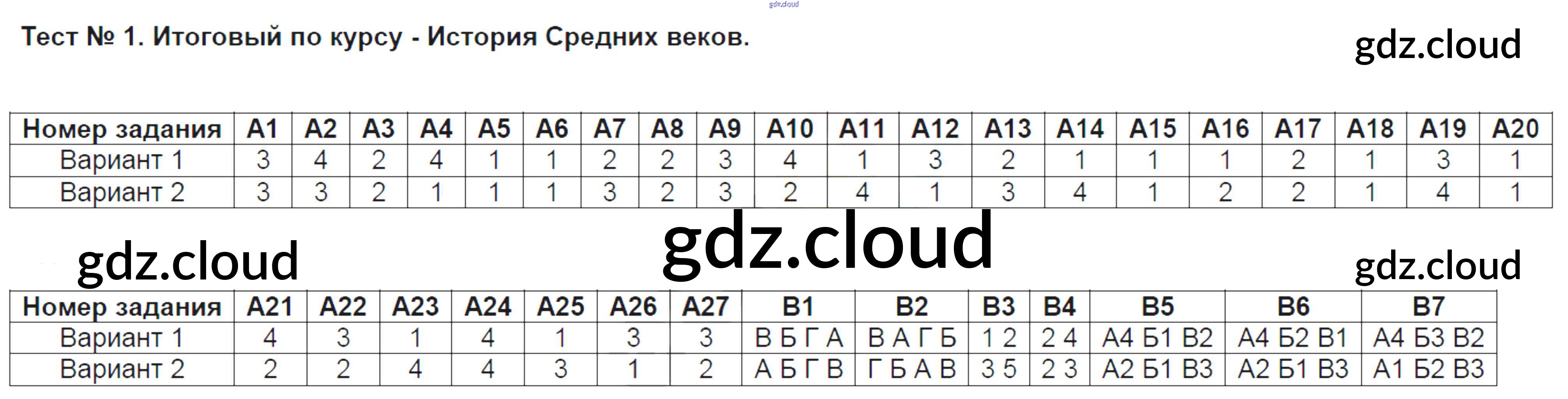 Ответы к Тестам по Истории 7 класс Контрольно-измерительные материалы (КИМ) Волкова ВАКО