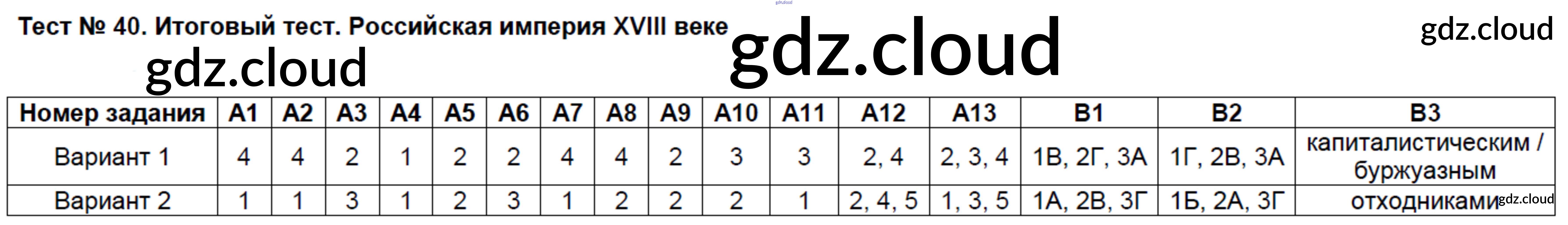 Ответы к Тестам по Истории 7 класс Контрольно-измерительные материалы (КИМ) Волкова ВАКО