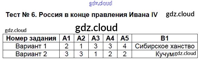 Ответ на задание 6 Контрольно-измерительные материалы (КИМ) История за 7 (седьмой) класс Волкова 2017 ФГОС онлайн и без номера телефона.