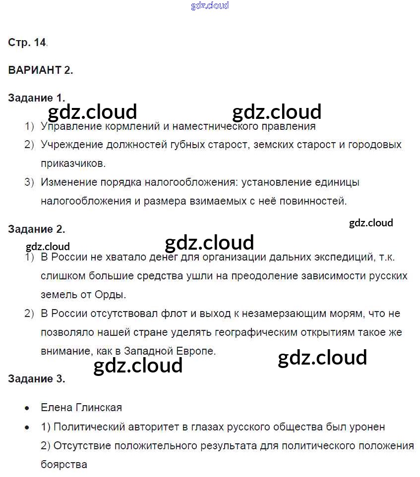 Ответ на задание 14 Контрольные работы История за 7 (седьмой) класс Артасов УМК 2016 ФГОС онлайн и без номера телефона.