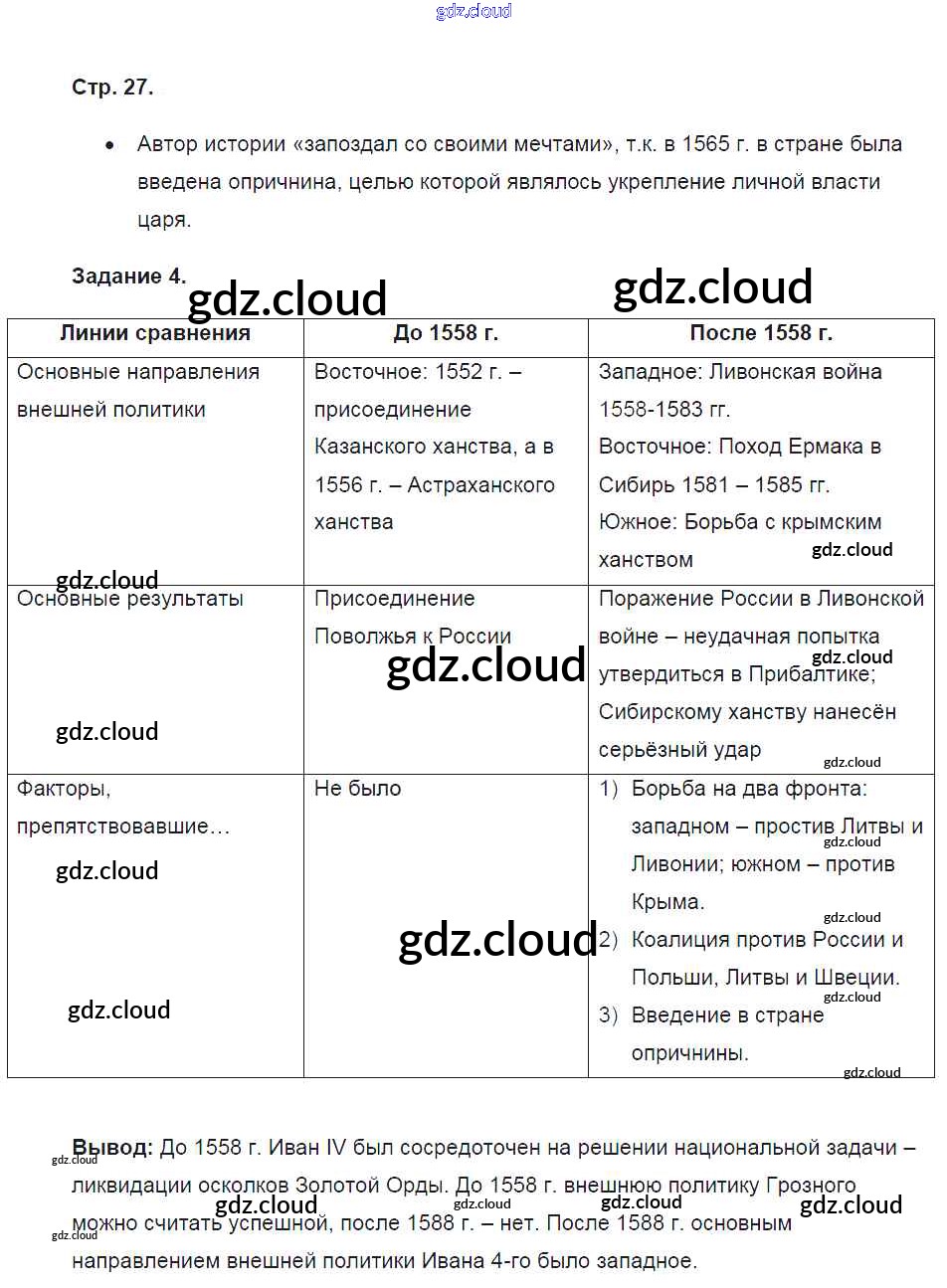 Ответ на задание 27 Контрольные работы История за 7 (седьмой) класс Артасов УМК 2016 ФГОС онлайн и без номера телефона.