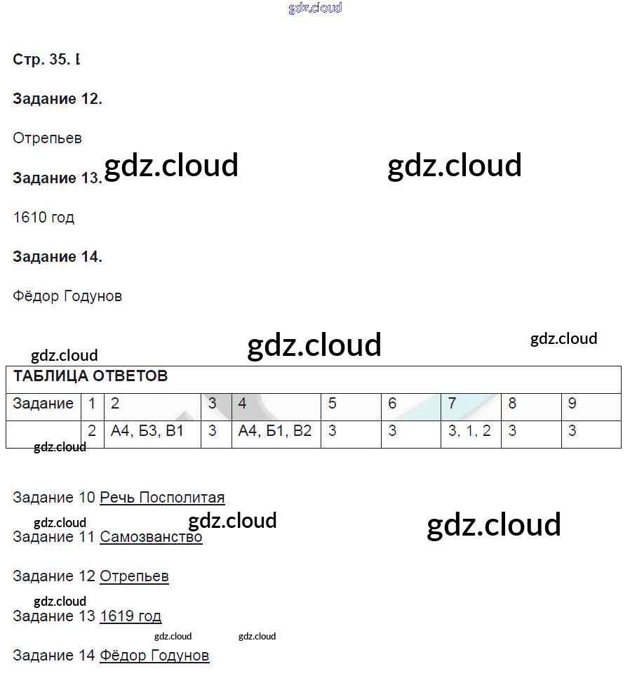 Ответ на задание 35 Контрольные работы История за 7 (седьмой) класс Артасов УМК 2016 ФГОС онлайн и без номера телефона.