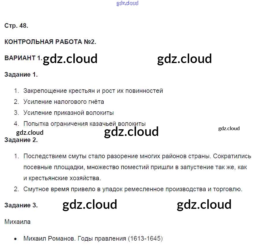Ответ на задание 48 Контрольные работы История за 7 (седьмой) класс Артасов УМК 2016 ФГОС онлайн и без номера телефона.