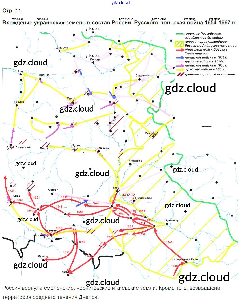 Ответ на задание 11 Контурные карты История за 7 (седьмой) класс Тороп 2020 ФГОС онлайн и без номера телефона.