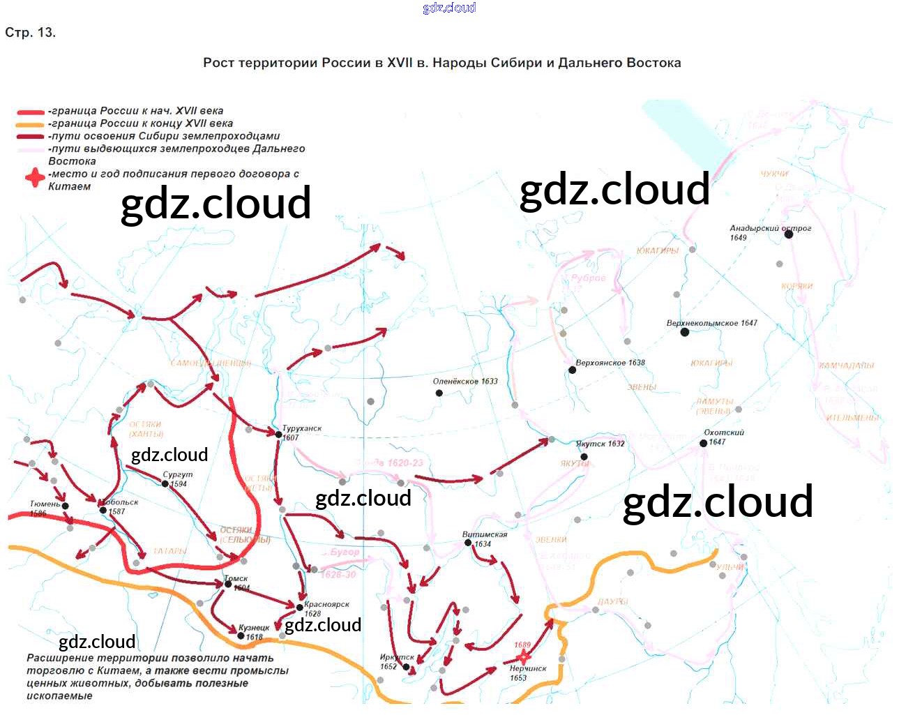 Ответ на задание 13 Контурные карты История за 7 (седьмой) класс Тороп 2020 ФГОС онлайн и без номера телефона.
