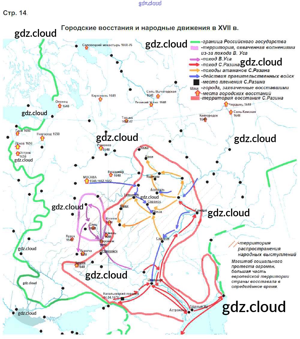Ответ на задание 14 Контурные карты История за 7 (седьмой) класс Тороп 2020 ФГОС онлайн и без номера телефона.