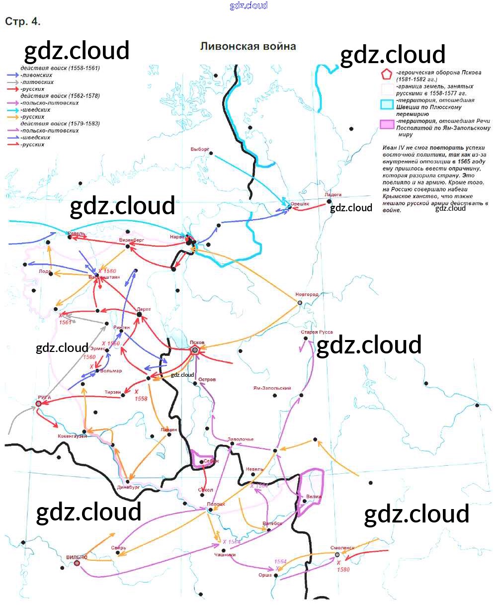 Ответ на задание 4 Контурные карты История за 7 (седьмой) класс Тороп 2020 ФГОС онлайн и без номера телефона.