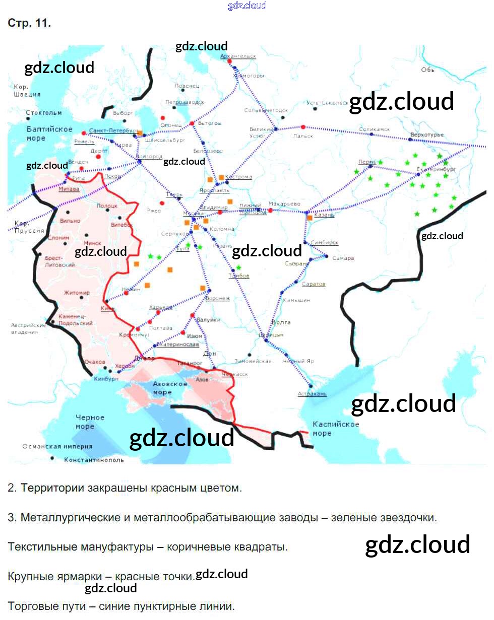 Ответ на задание 11 Контурные карты История за 7 (седьмой) класс Павлова 2014 ФГОС онлайн и без номера телефона.