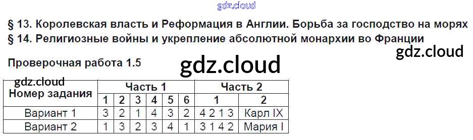 Ответ на задание 1.5 Проверочные и контрольные работы История за 7 (седьмой) класс Баранов УМК 2018