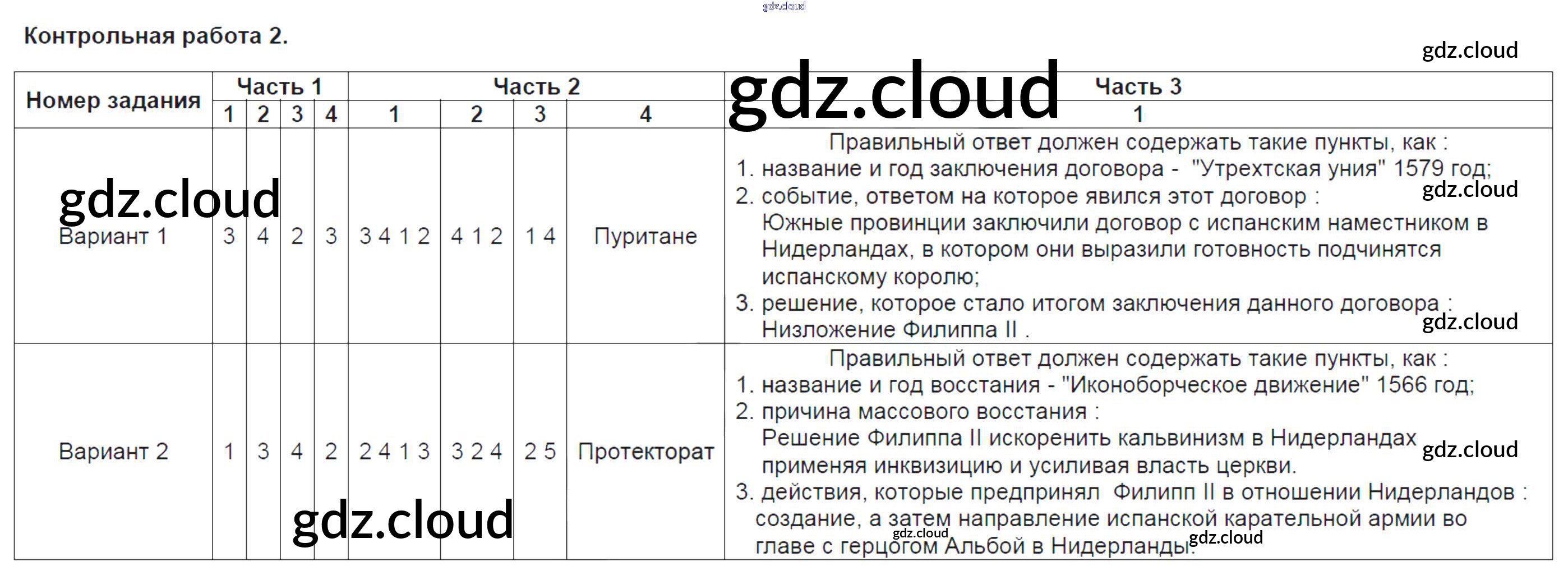 Ответ на задание 2 Проверочные и контрольные работы История за 7 (седьмой) класс Баранов УМК 2018