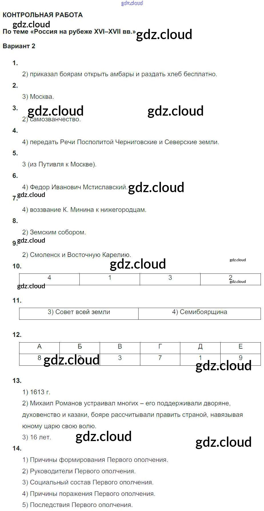 Ответы к КР. Россия на рубеже XVI-XVII вв по Истории 7 класс Рабочая тетрадь Акиньшина Национальное образование