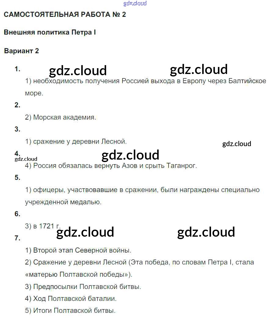 Ответ на задание Вариант 2 Рабочая тетрадь История за 7 (седьмой) класс Акиньшина, Артасов 2013