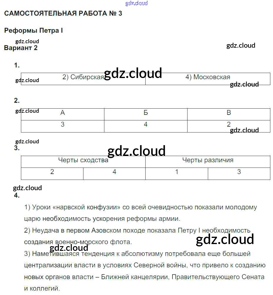 Россия в первой четверти XVIII века / ср-4 / вариант 2