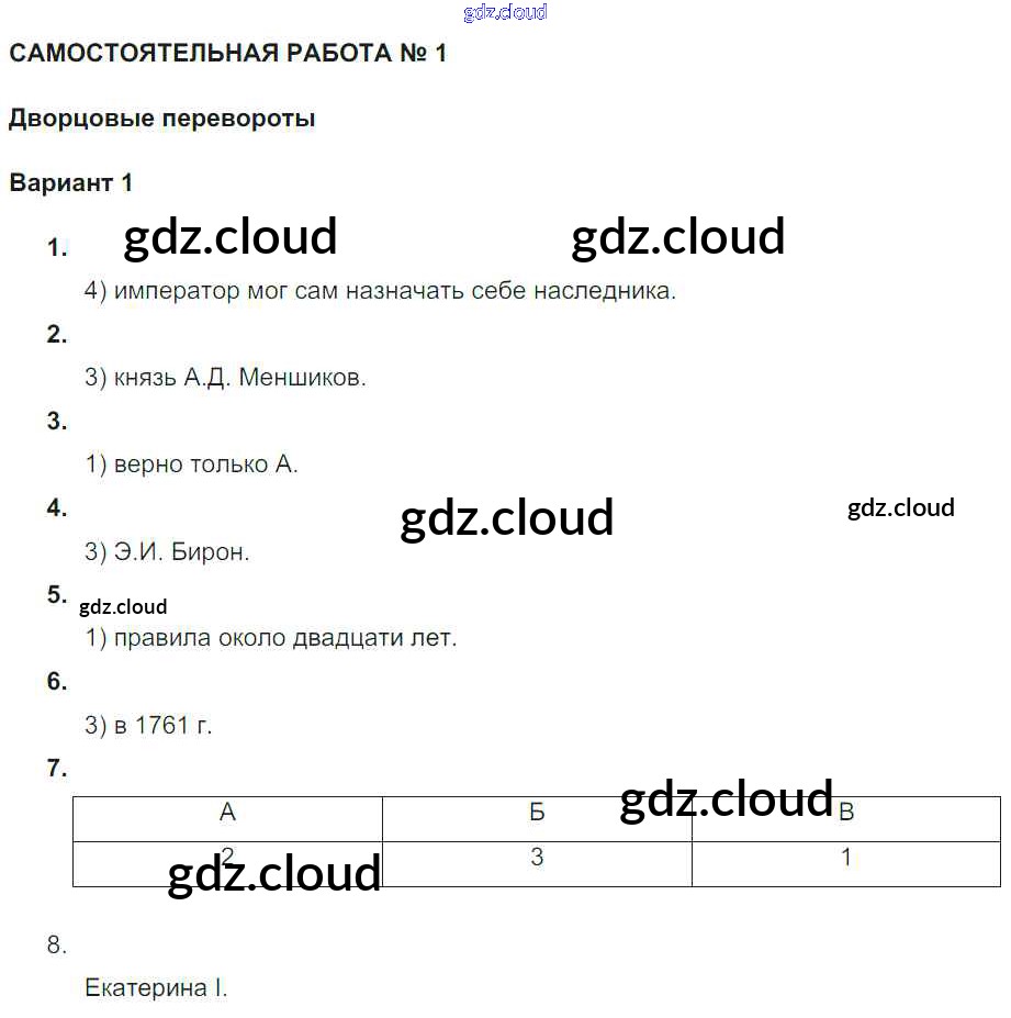 СР-1. Дворцовые перевороты Ответы к теме Российская империя в 1725-1762 гг по Истории 7 класс Рабочая тетрадь Акиньшина Национальное образование