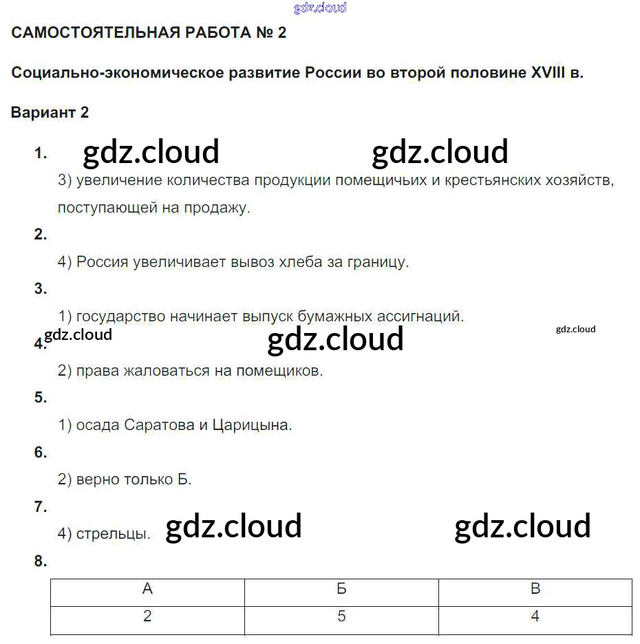 Ответ на задание Вариант 2 Рабочая тетрадь История за 7 (седьмой) класс Акиньшина, Артасов 2013