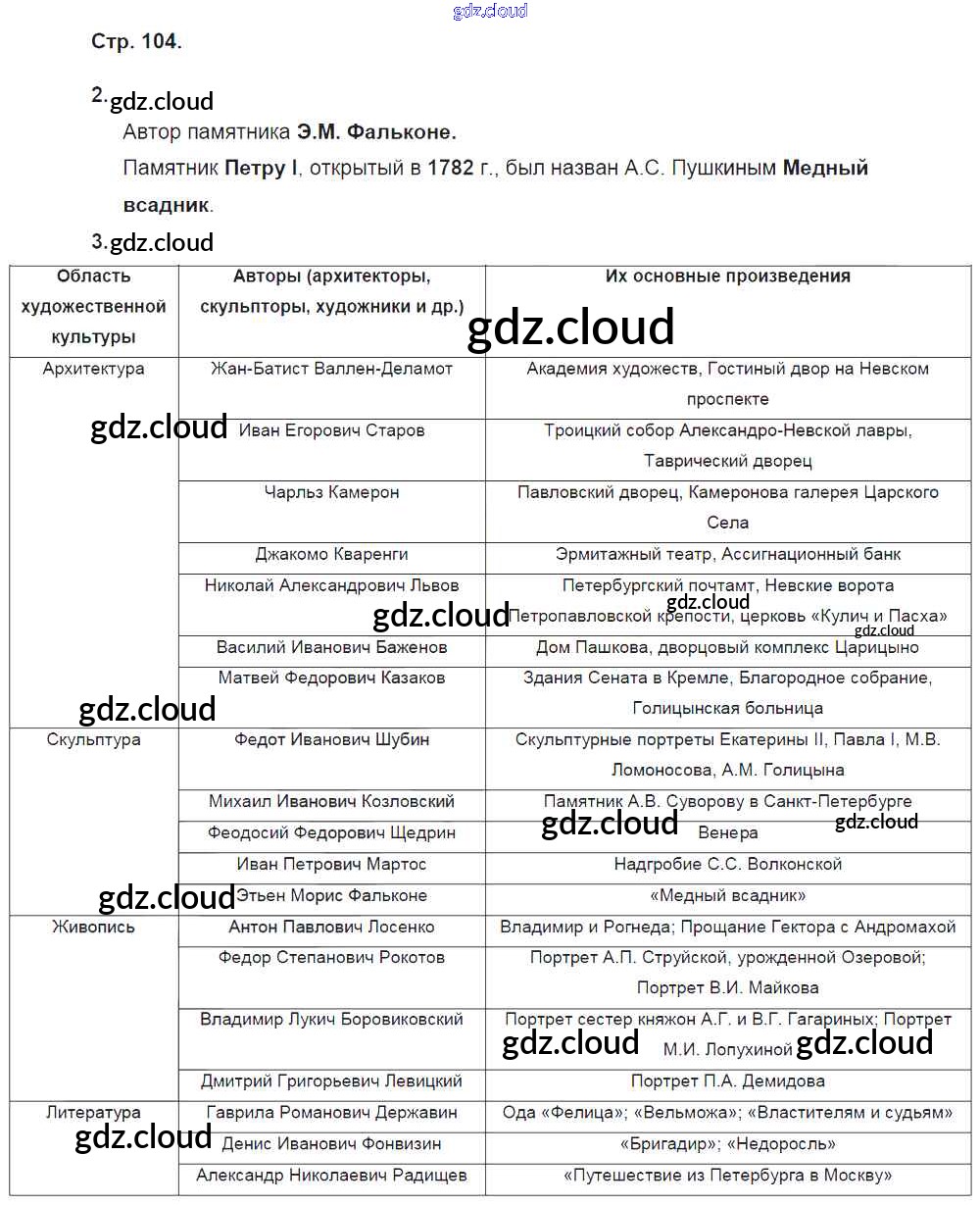 Ответ на задание 104 Рабочая тетрадь История за 7 (седьмой) класс Баранов Алгоритм успеха 2017 ФГОС онлайн и без номера телефона.