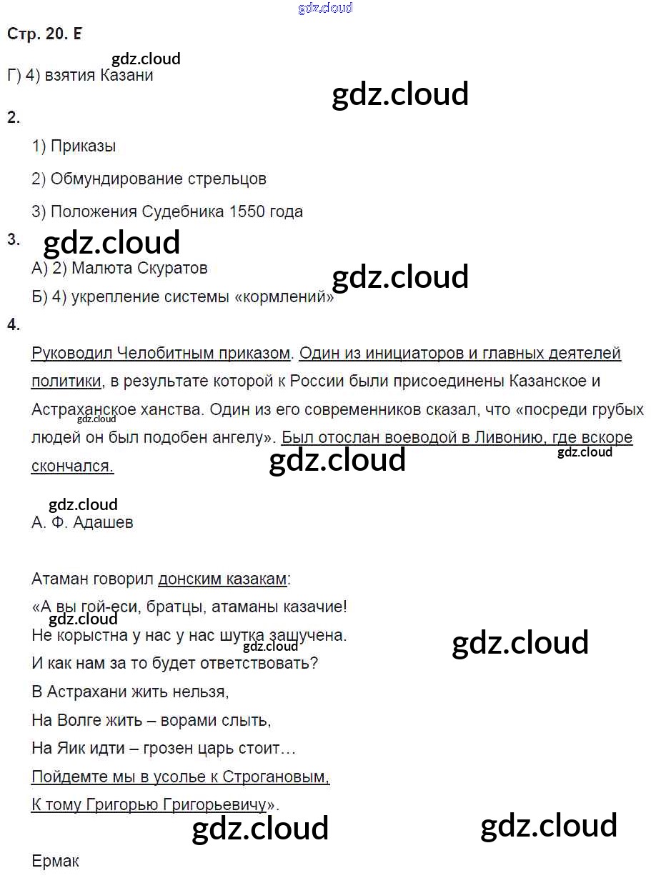 Ответ на задание 20 Рабочая тетрадь История за 7 (седьмой) класс Баранов Алгоритм успеха 2017 ФГОС онлайн и без номера телефона.
