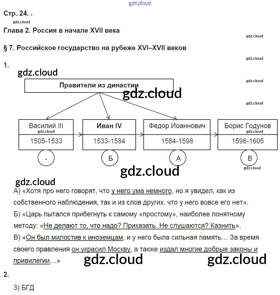 Ответ на задание 24 Рабочая тетрадь История за 7 (седьмой) класс Баранов Алгоритм успеха 2017 ФГОС онлайн и без номера телефона.