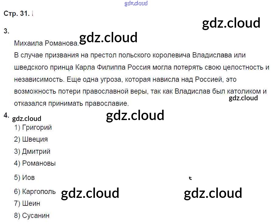 Ответ на задание 31 Рабочая тетрадь История за 7 (седьмой) класс Баранов Алгоритм успеха 2017 ФГОС онлайн и без номера телефона.
