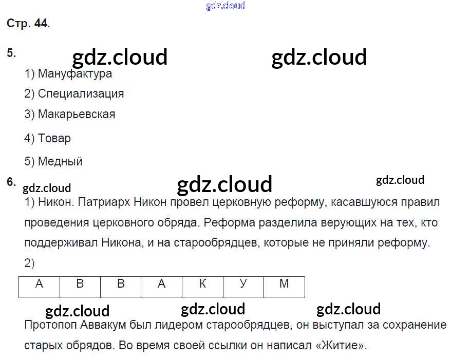 Ответ на задание 44 Рабочая тетрадь История за 7 (седьмой) класс Баранов Алгоритм успеха 2017 ФГОС онлайн и без номера телефона.