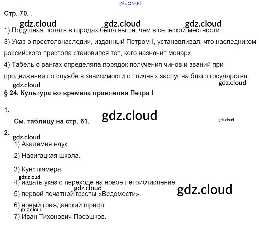 Ответ на задание 70 Рабочая тетрадь История за 7 (седьмой) класс Баранов Алгоритм успеха 2017 ФГОС онлайн и без номера телефона.