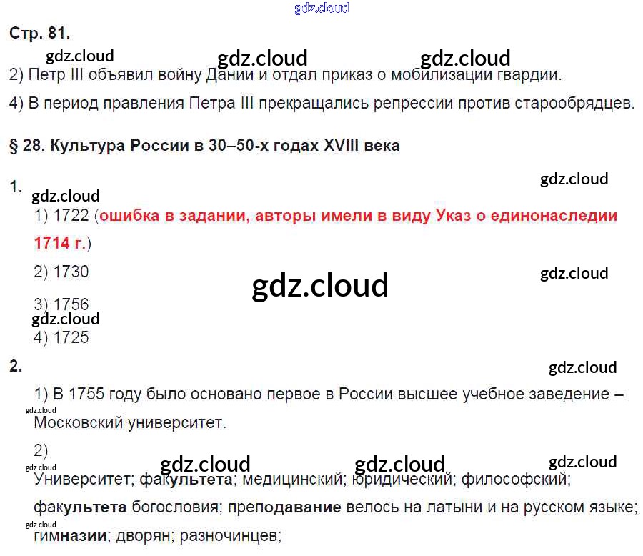 Ответ на задание 81 Рабочая тетрадь История за 7 (седьмой) класс Баранов Алгоритм успеха 2017 ФГОС онлайн и без номера телефона.