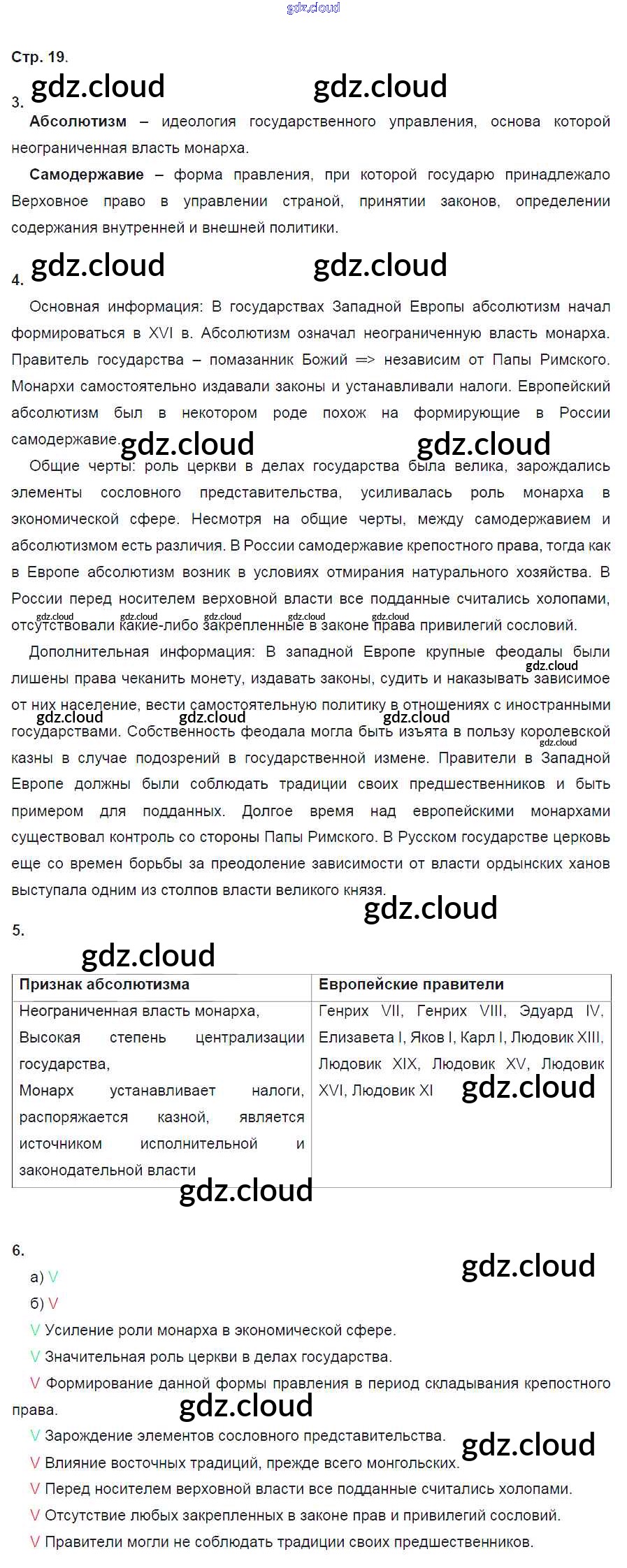 Ответ на задание стр.19 Рабочая тетрадь История за 7 (седьмой) класс Чернова УМК 2017 Часть 1, 2 ФГОС онлайн и без номера телефона.