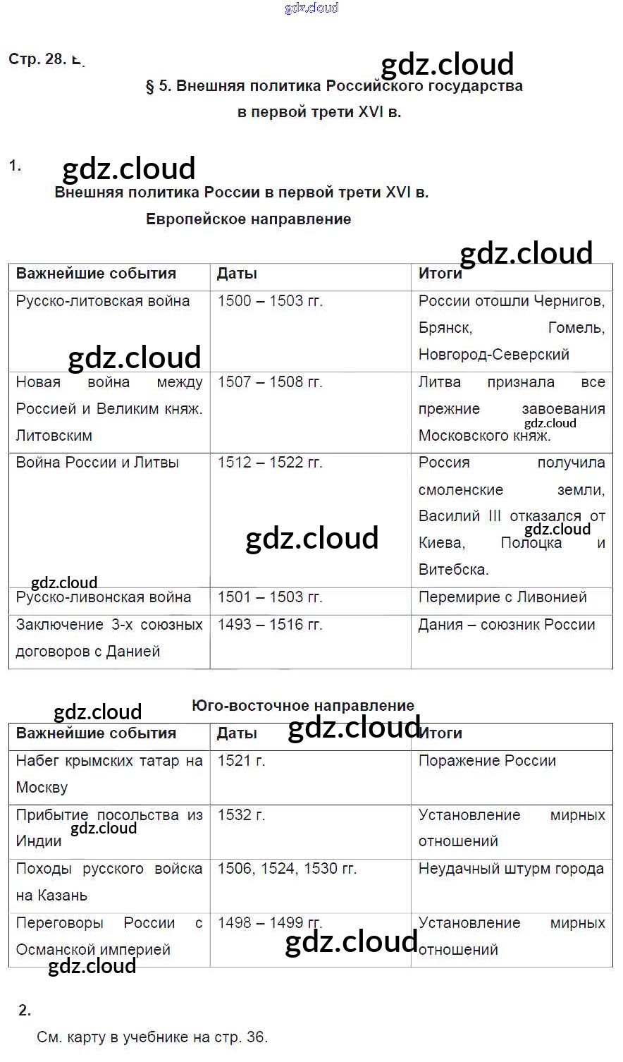 Ответ на задание стр.28 Рабочая тетрадь История за 7 (седьмой) класс Чернова УМК 2017 Часть 1, 2 ФГОС онлайн и без номера телефона.