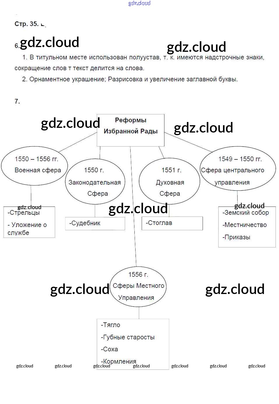 Ответ на задание стр.35 Рабочая тетрадь История за 7 (седьмой) класс Чернова УМК 2017 Часть 1, 2 ФГОС онлайн и без номера телефона.