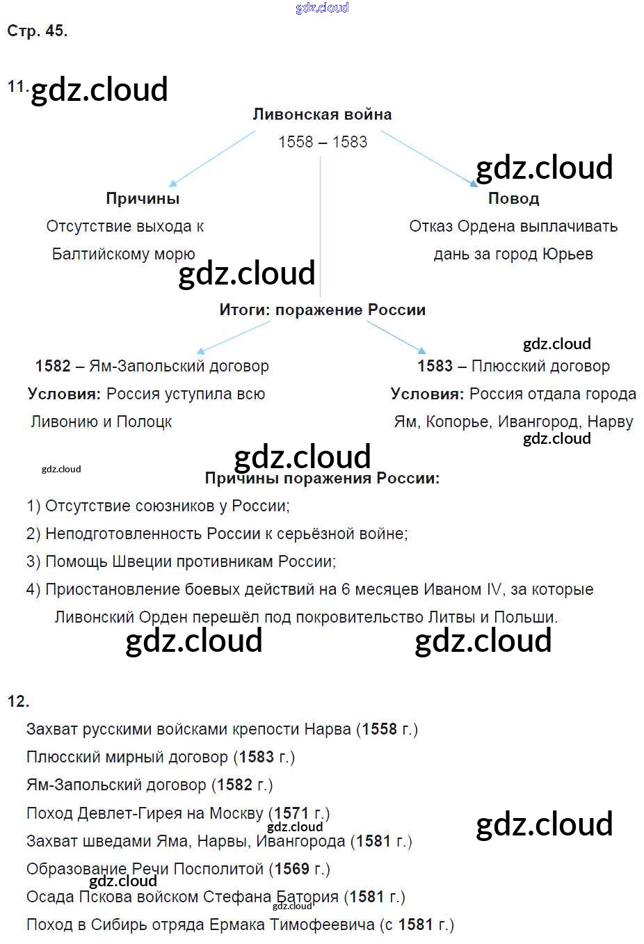 Ответ на задание стр.45 Рабочая тетрадь История за 7 (седьмой) класс Чернова УМК 2017 Часть 1, 2 ФГОС онлайн и без номера телефона.