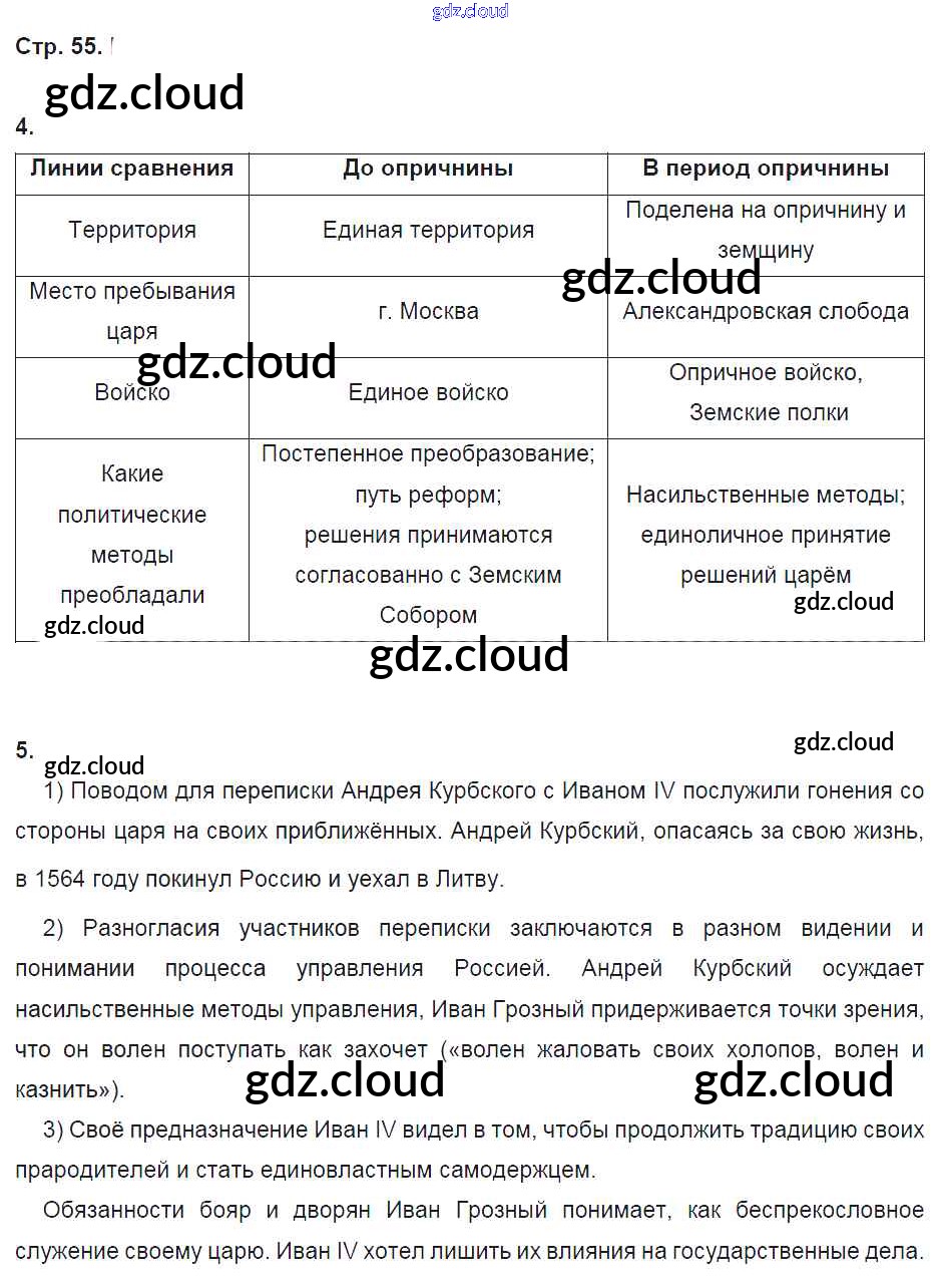 Ответ на задание стр.55 Рабочая тетрадь История за 7 (седьмой) класс Чернова УМК 2017 Часть 1, 2 ФГОС онлайн и без номера телефона.