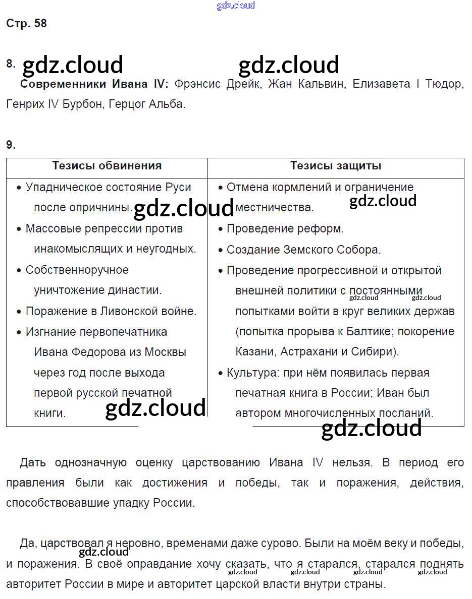 Ответ на задание стр.58 Рабочая тетрадь История за 7 (седьмой) класс Чернова УМК 2017 Часть 1, 2 ФГОС онлайн и без номера телефона.