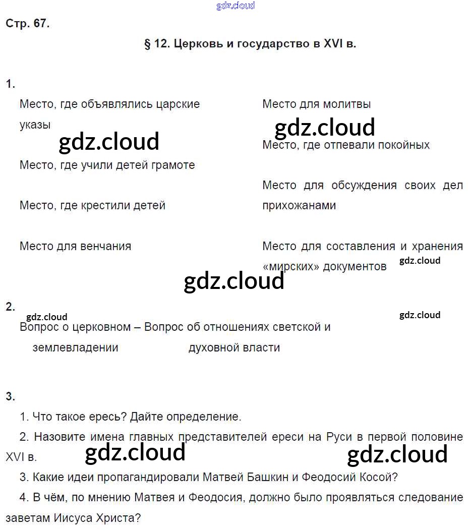 Ответ на задание стр.67 Рабочая тетрадь История за 7 (седьмой) класс Чернова УМК 2017 Часть 1, 2 ФГОС онлайн и без номера телефона.