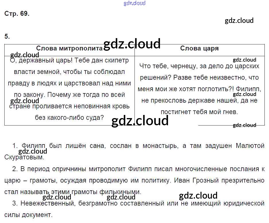 Ответ на задание стр.69 Рабочая тетрадь История за 7 (седьмой) класс Чернова УМК 2017 Часть 1, 2 ФГОС онлайн и без номера телефона.