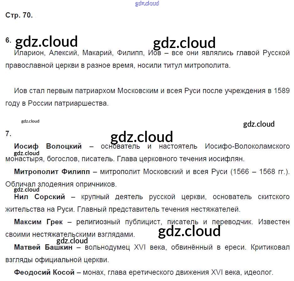 Ответ на задание стр.70 Рабочая тетрадь История за 7 (седьмой) класс Чернова УМК 2017 Часть 1, 2 ФГОС онлайн и без номера телефона.