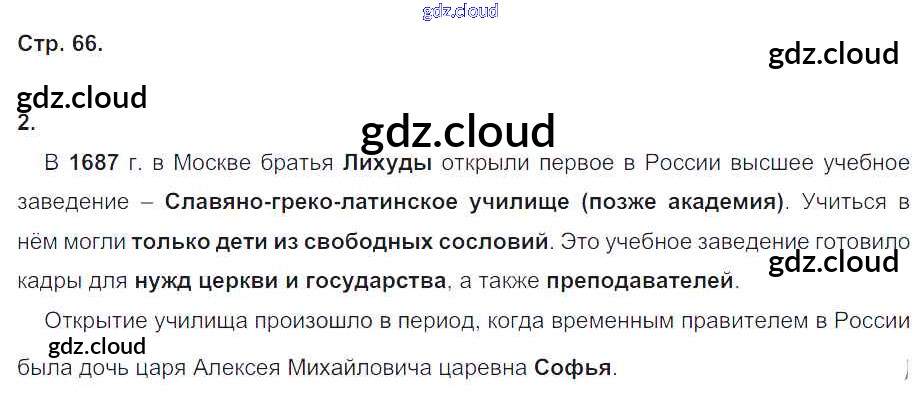 Ответ на задание стр.66 Рабочая тетрадь История за 7 (седьмой) класс Чернова УМК 2017 Часть 1, 2 ФГОС онлайн и без номера телефона.