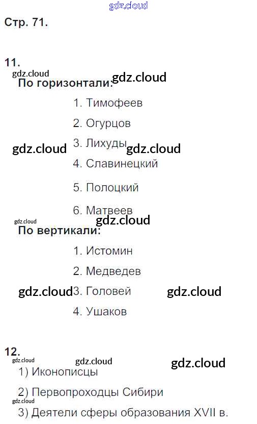 Ответ на задание стр.71 Рабочая тетрадь История за 7 (седьмой) класс Чернова УМК 2017 Часть 1, 2 ФГОС онлайн и без номера телефона.