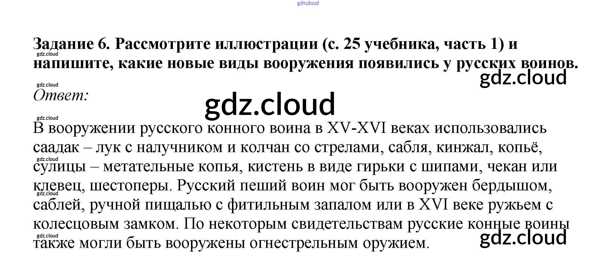 Ответ на задание 6 Рабочая тетрадь История за 7 (седьмой) класс Данилов, Косулина, Лукутин, Соколова 2016