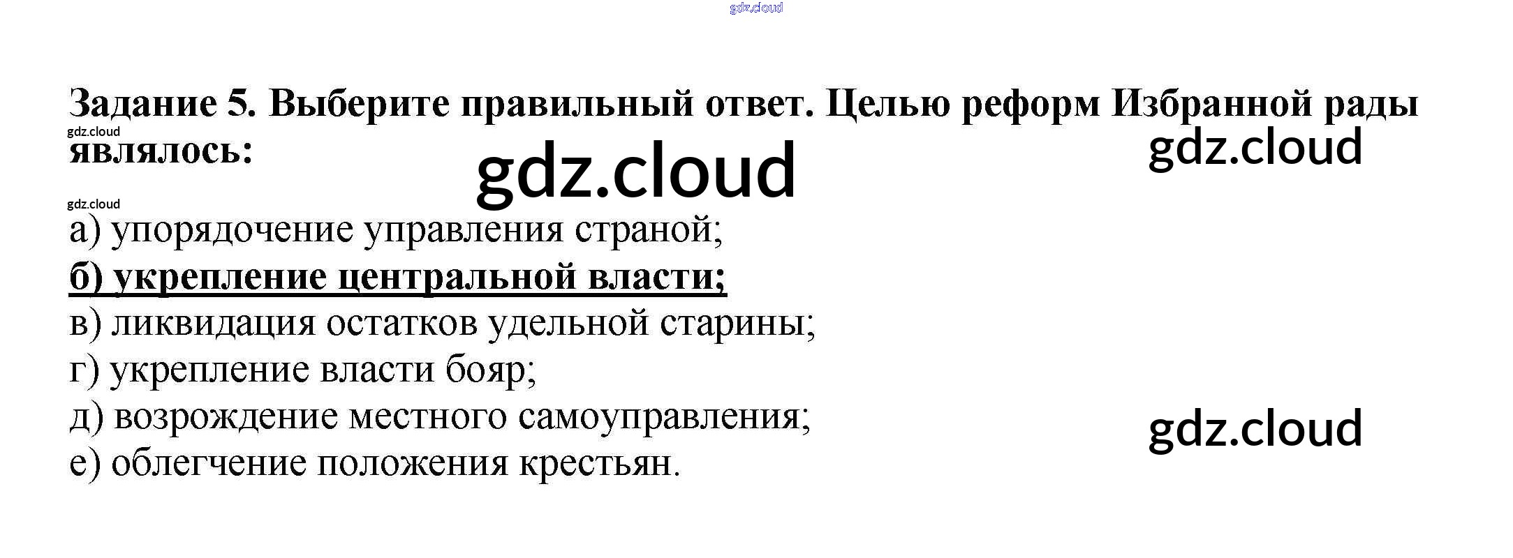 Ответ на задание 5 Рабочая тетрадь История за 7 (седьмой) класс Данилов, Косулина, Лукутин, Соколова 2016