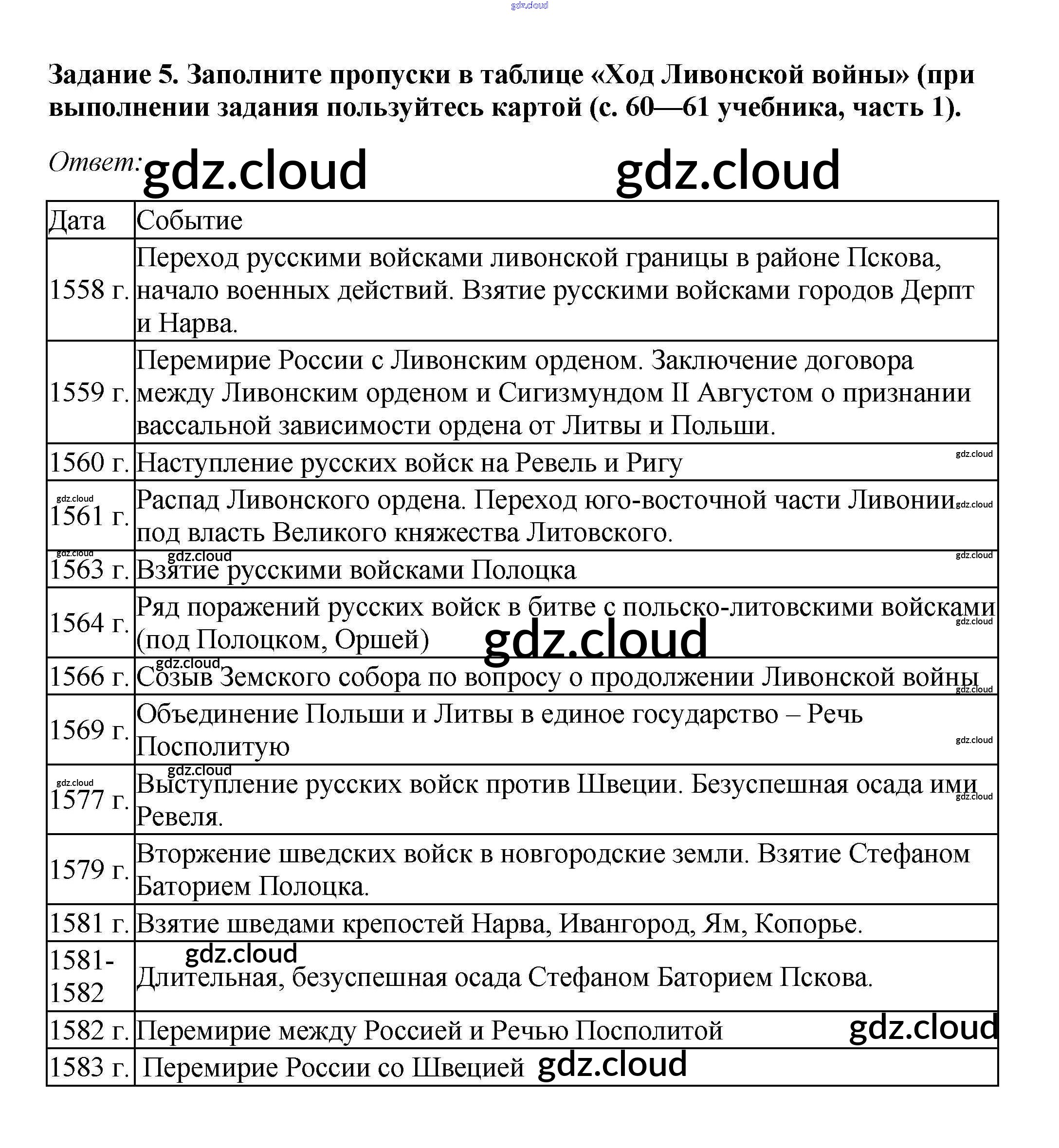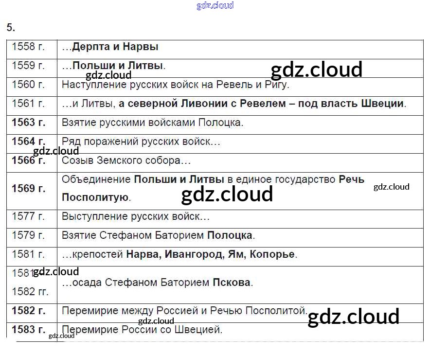 Ответ на задание 5 Рабочая тетрадь История за 7 (седьмой) класс Данилов, Косулина, Лукутин, Соколова 2016