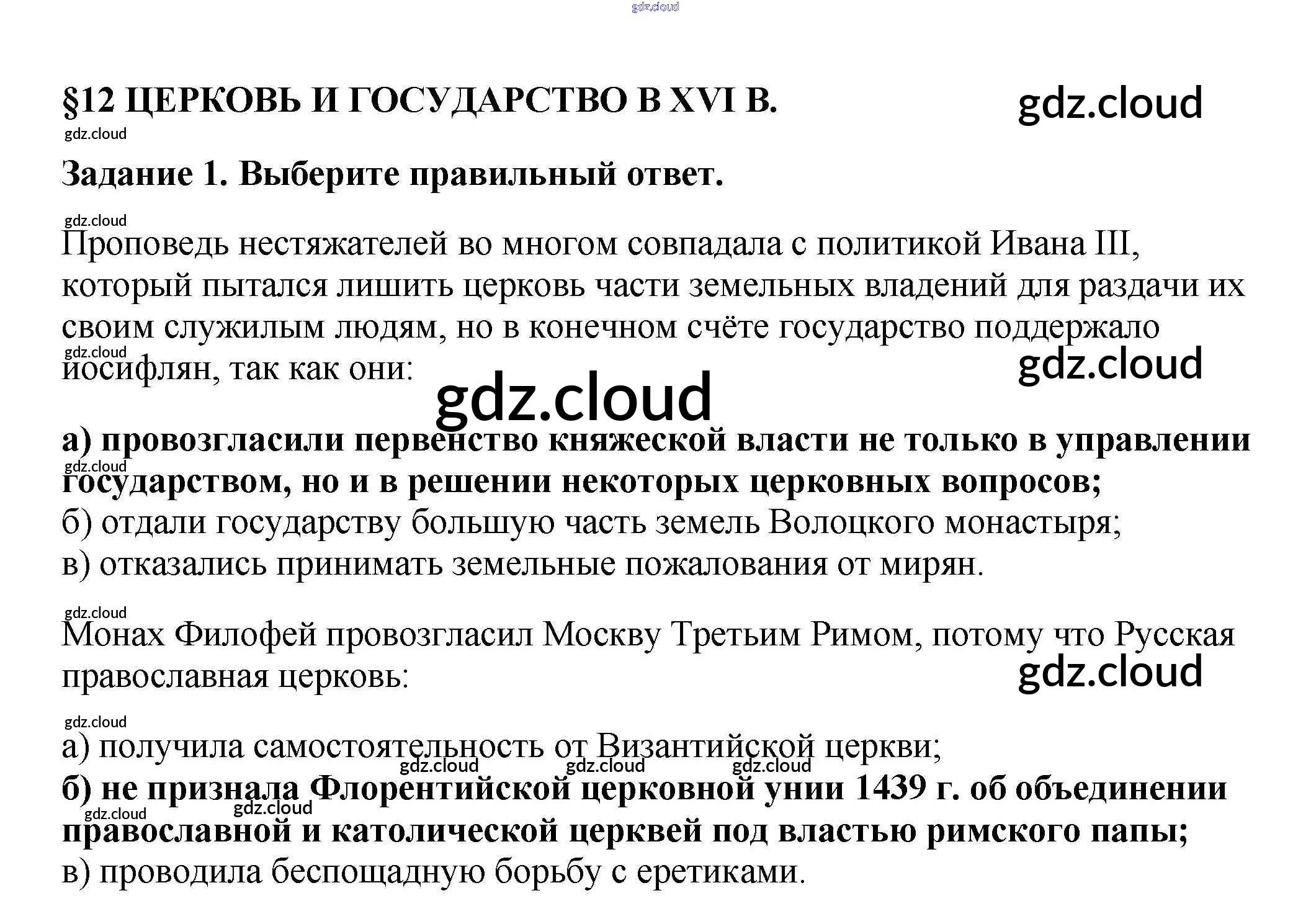 Ответы к § 12. Церковь и государство в XVI в. по Истории 7 класс Рабочая тетрадь Данилов Просвещение