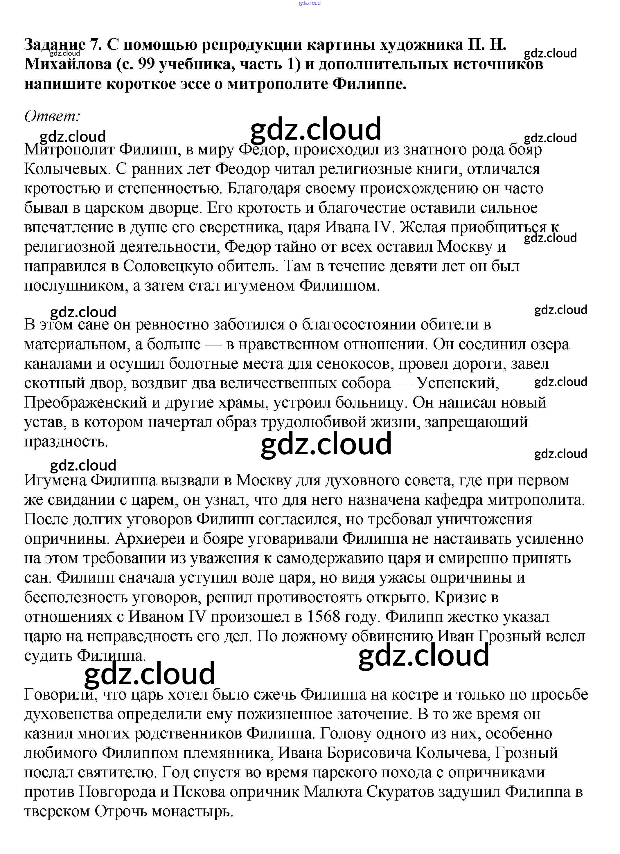 Ответ на задание 7 Рабочая тетрадь История за 7 (седьмой) класс Данилов, Косулина, Лукутин, Соколова 2016