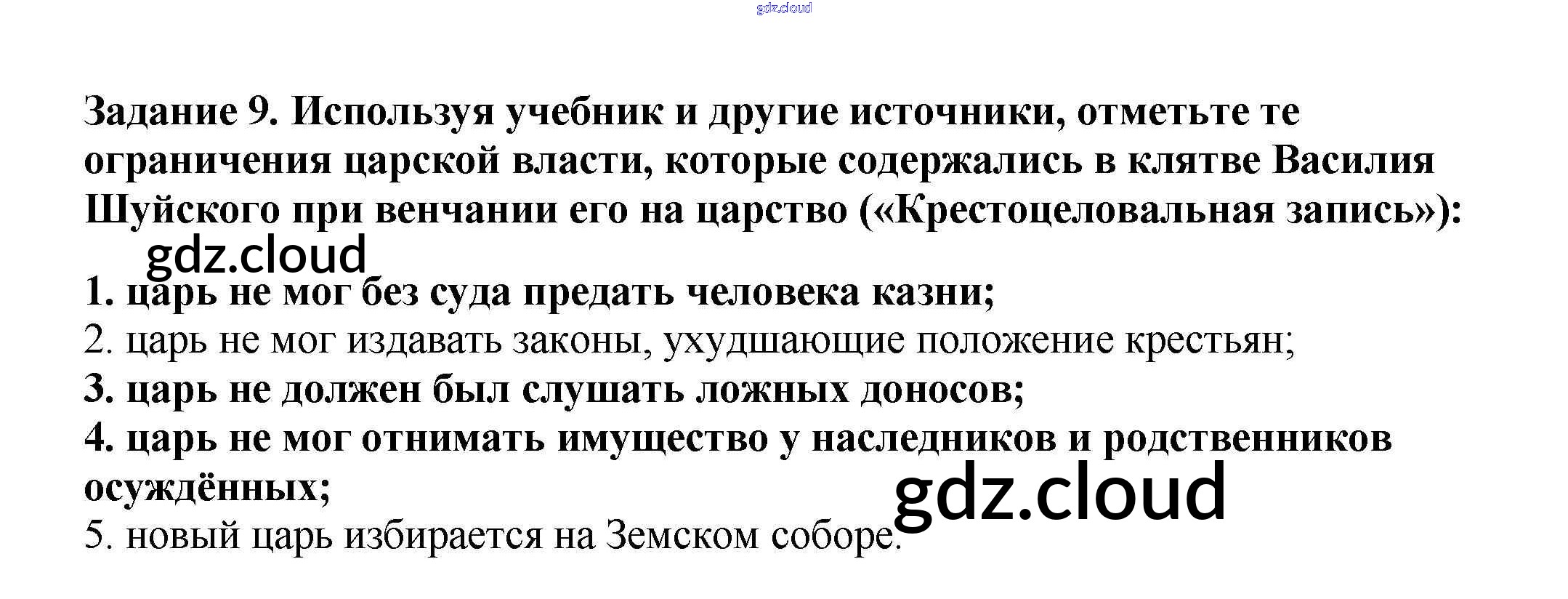 Ответ на задание 9 Рабочая тетрадь История за 7 (седьмой) класс Данилов, Косулина, Лукутин, Соколова УМК 2016