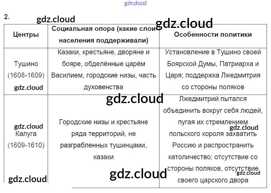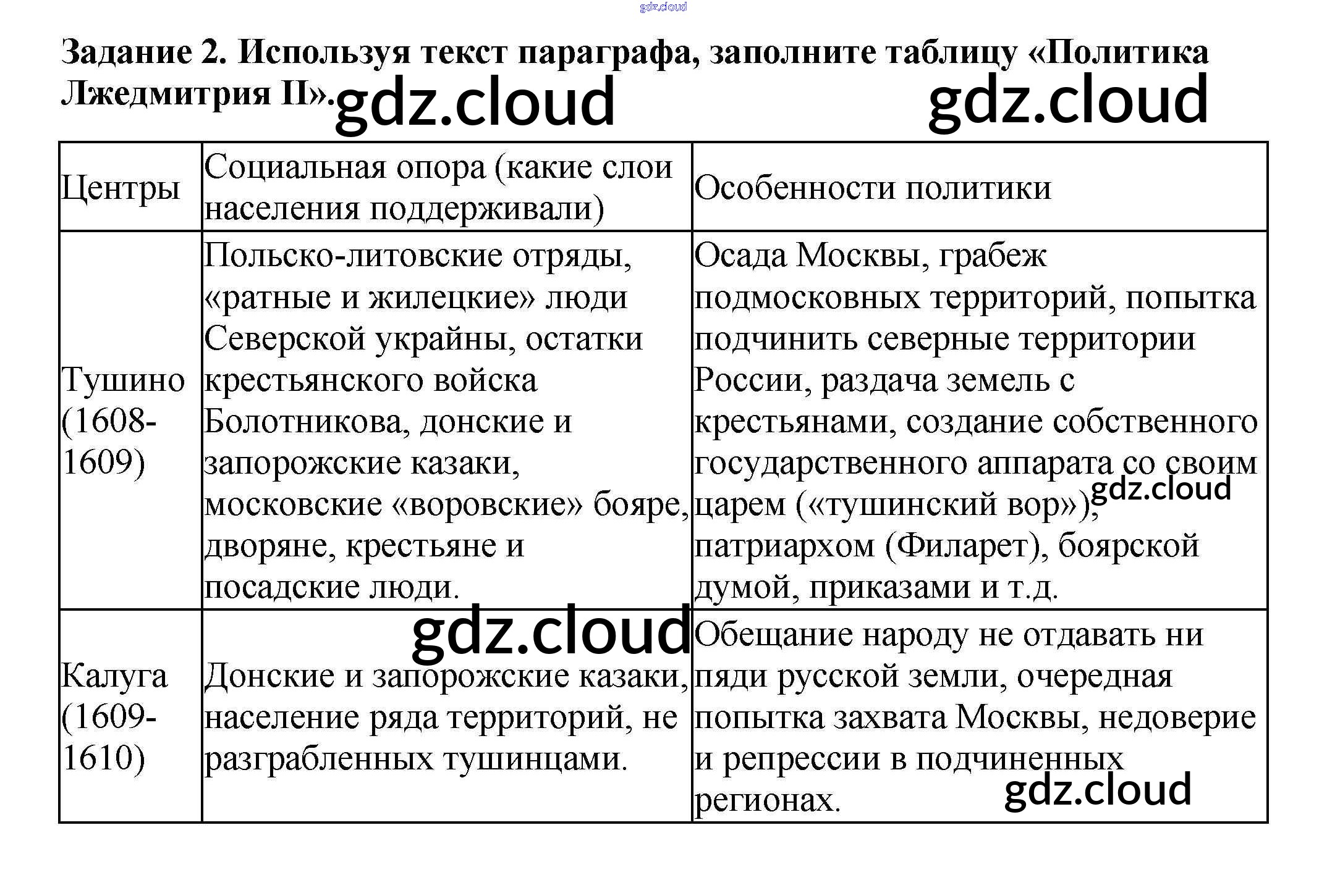 Ответ на задание 2 Рабочая тетрадь История за 7 (седьмой) класс Данилов, Косулина, Лукутин, Соколова 2016