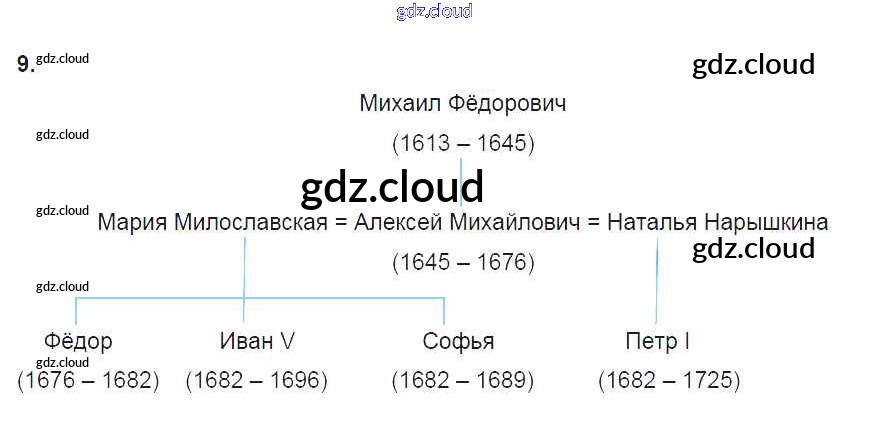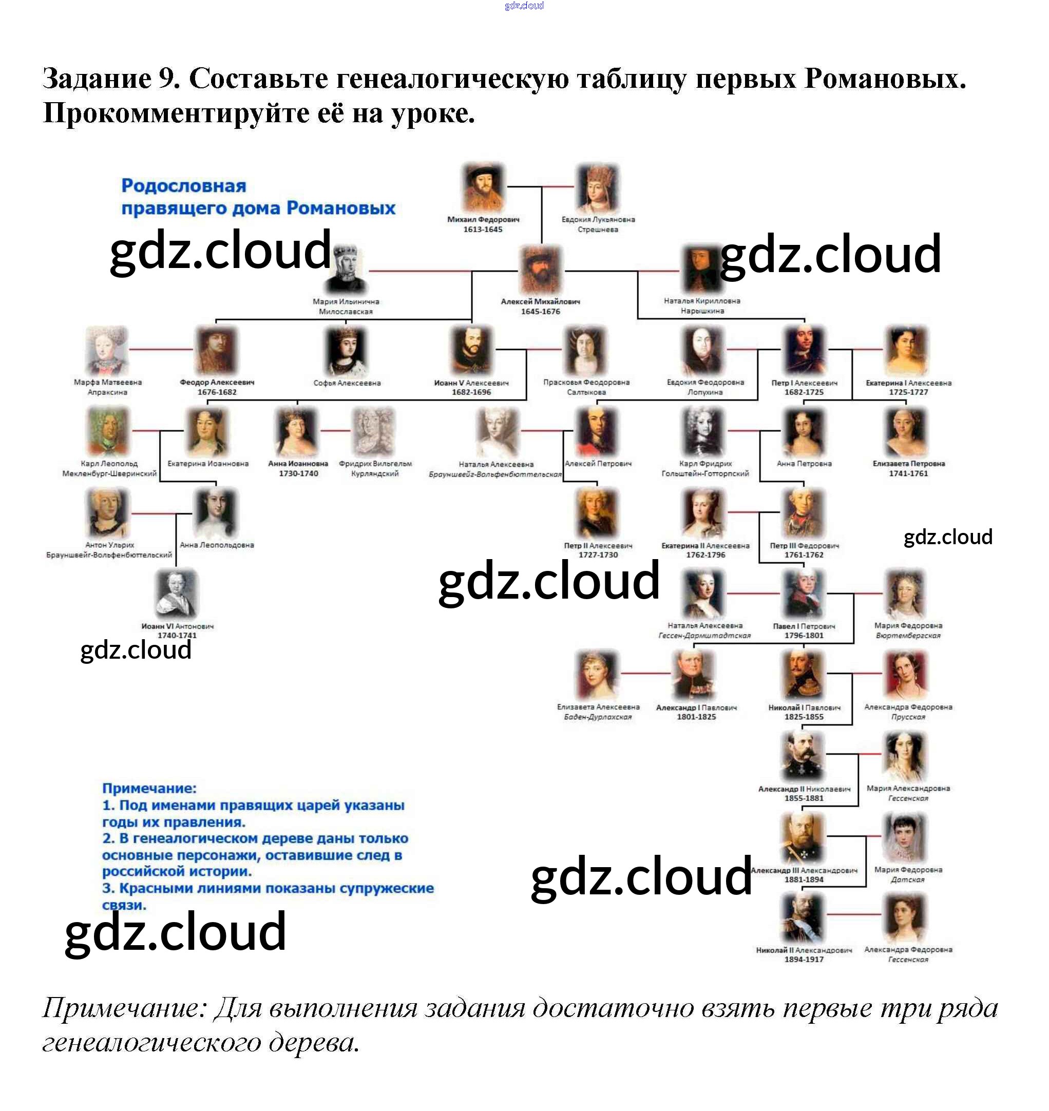 Ответ на задание 9 Рабочая тетрадь История за 7 (седьмой) класс Данилов, Косулина, Лукутин, Соколова УМК 2016