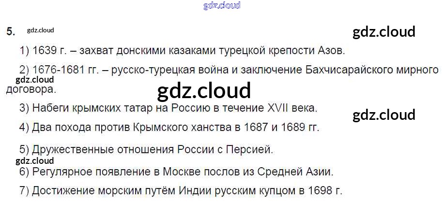 Ответ на задание 5 Рабочая тетрадь История за 7 (седьмой) класс Данилов, Косулина, Лукутин, Соколова УМК 2016