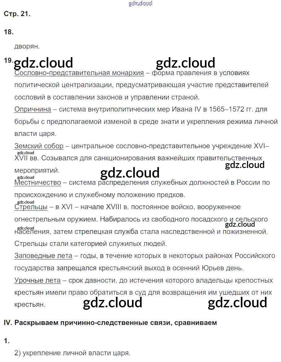 Ответ на задание 21 Рабочая тетрадь История за 7 (седьмой) класс Гевуркова УМК 2018 ФГОС онлайн и без номера телефона.