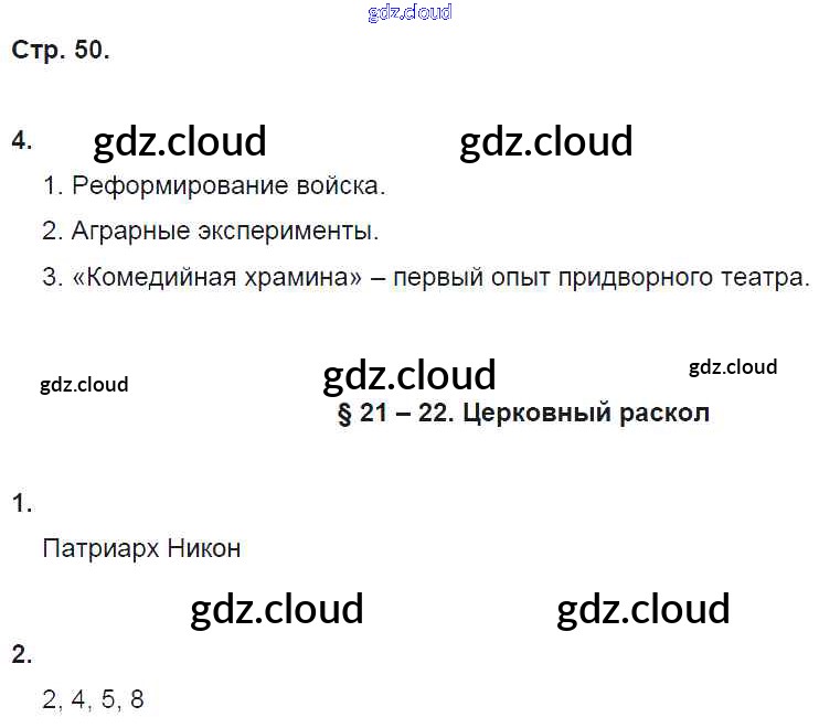 Ответ на задание 50 Рабочая тетрадь История за 7 (седьмой) класс Симонова, Клоков УМК 2018 ФГОС онлайн и без номера телефона.