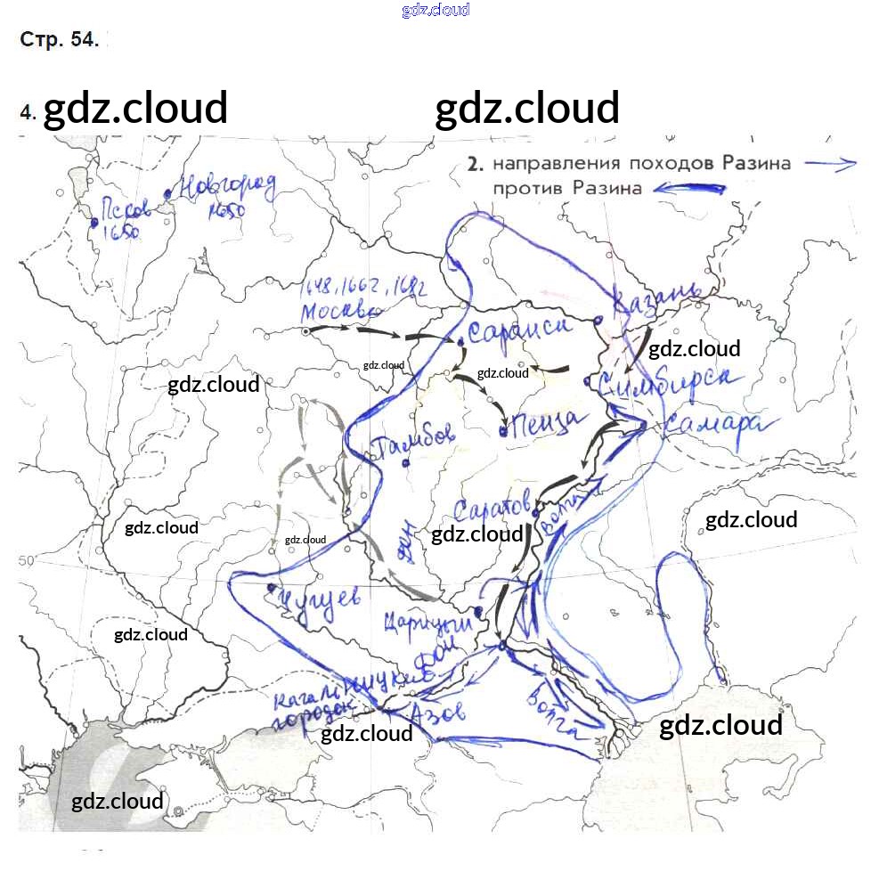 Ответ на задание 54 Рабочая тетрадь История за 7 (седьмой) класс Симонова, Клоков УМК 2018 ФГОС онлайн и без номера телефона.